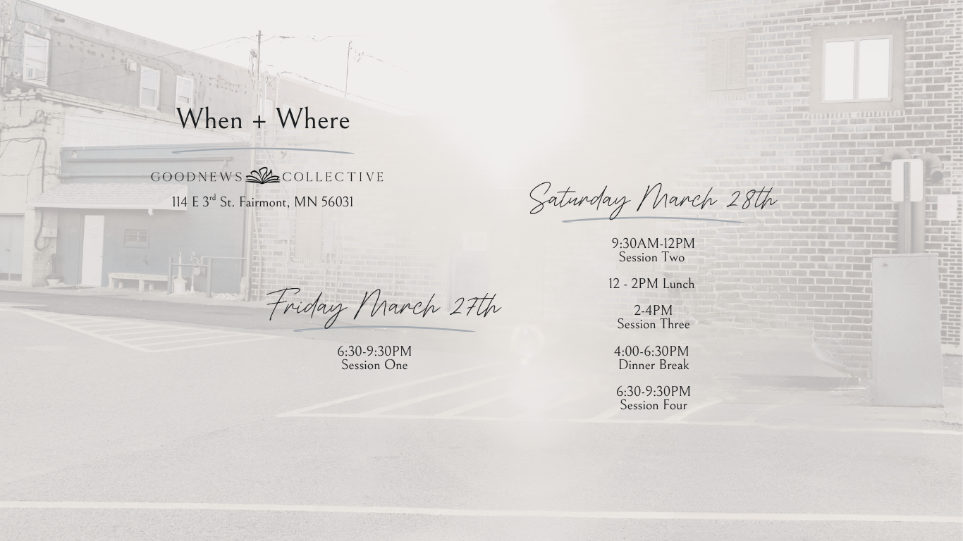 March 27–28, 2026 — The Goodnews Collective, 114 E 3rd St., Fairmont, MN